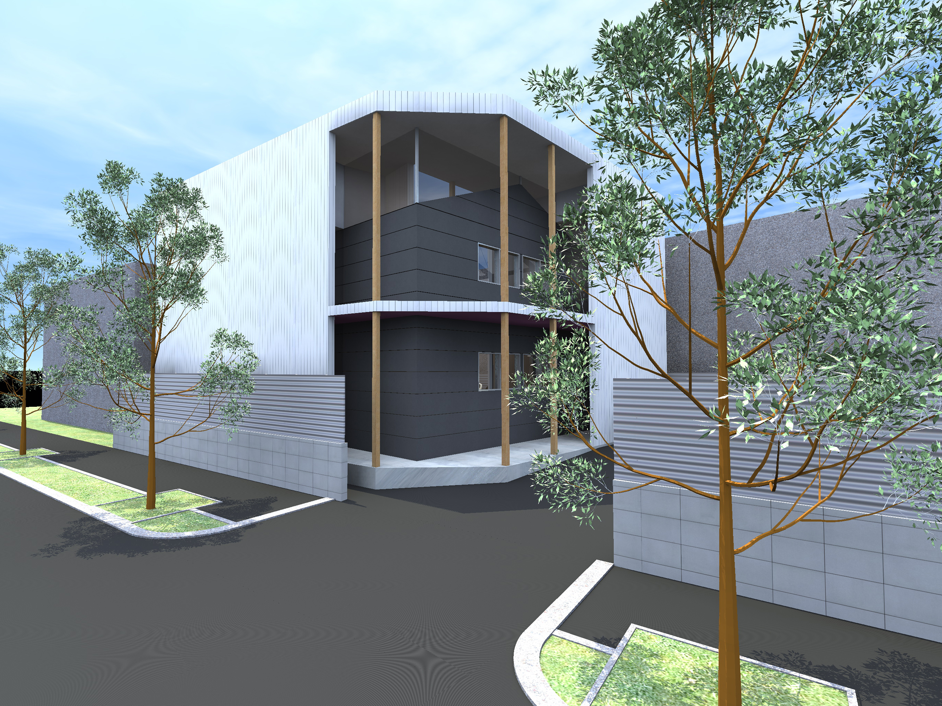 当該建物は、新たに都市計画で制定された高度斜線にかかっていた事により既存不適格となっていたが、建物自体は軽量鉄骨で基礎の補強とブレースの追加で、構造的には耐力が見込めた事から、この既存建物を敷地の反対側に曳家で建物を移動して、建物のリノベーションを行う計画を立てた。